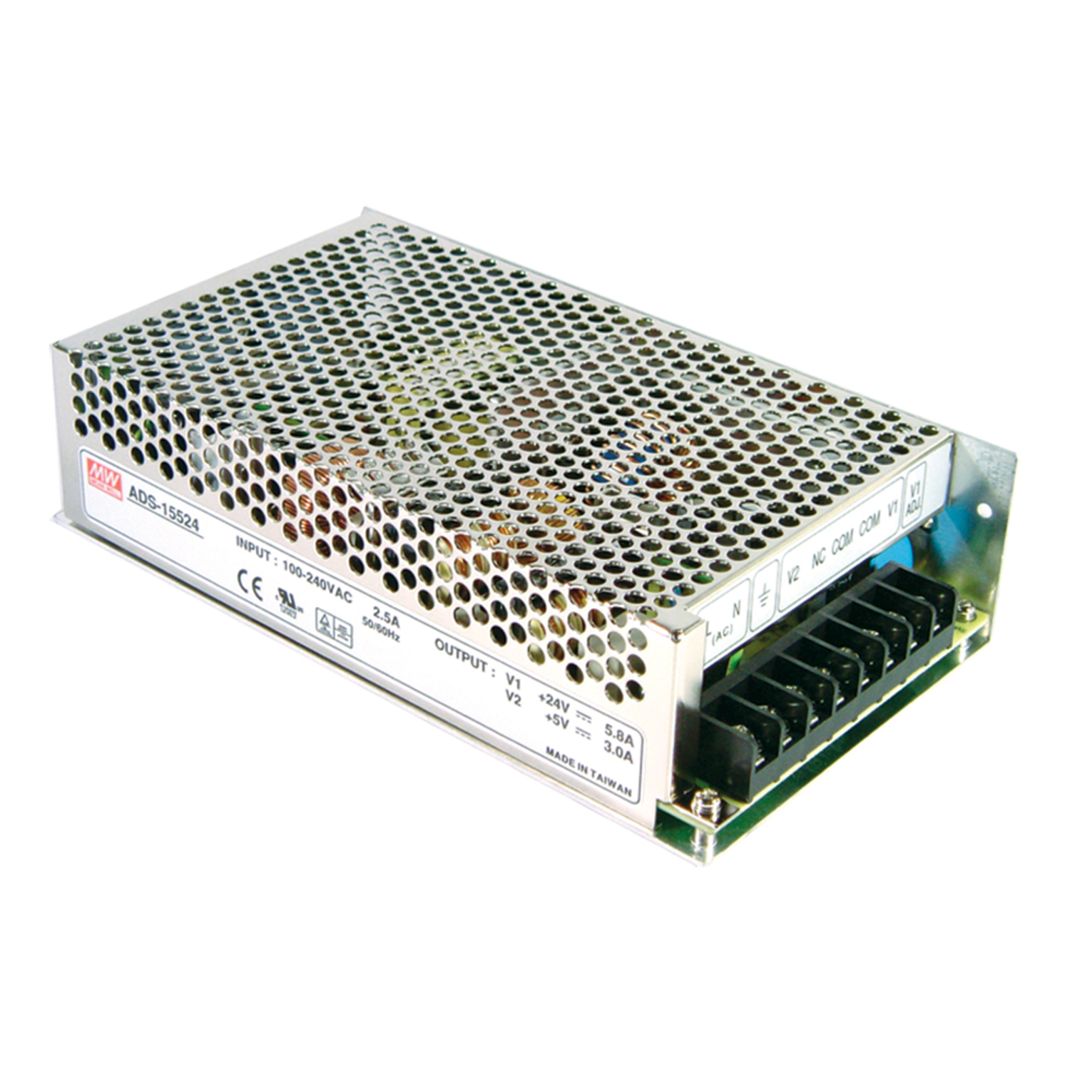 AC-DC Enclosed power supply with UPS function; Output 13.8Vdc at 11.5A +13.3Vdc at 0.5A
