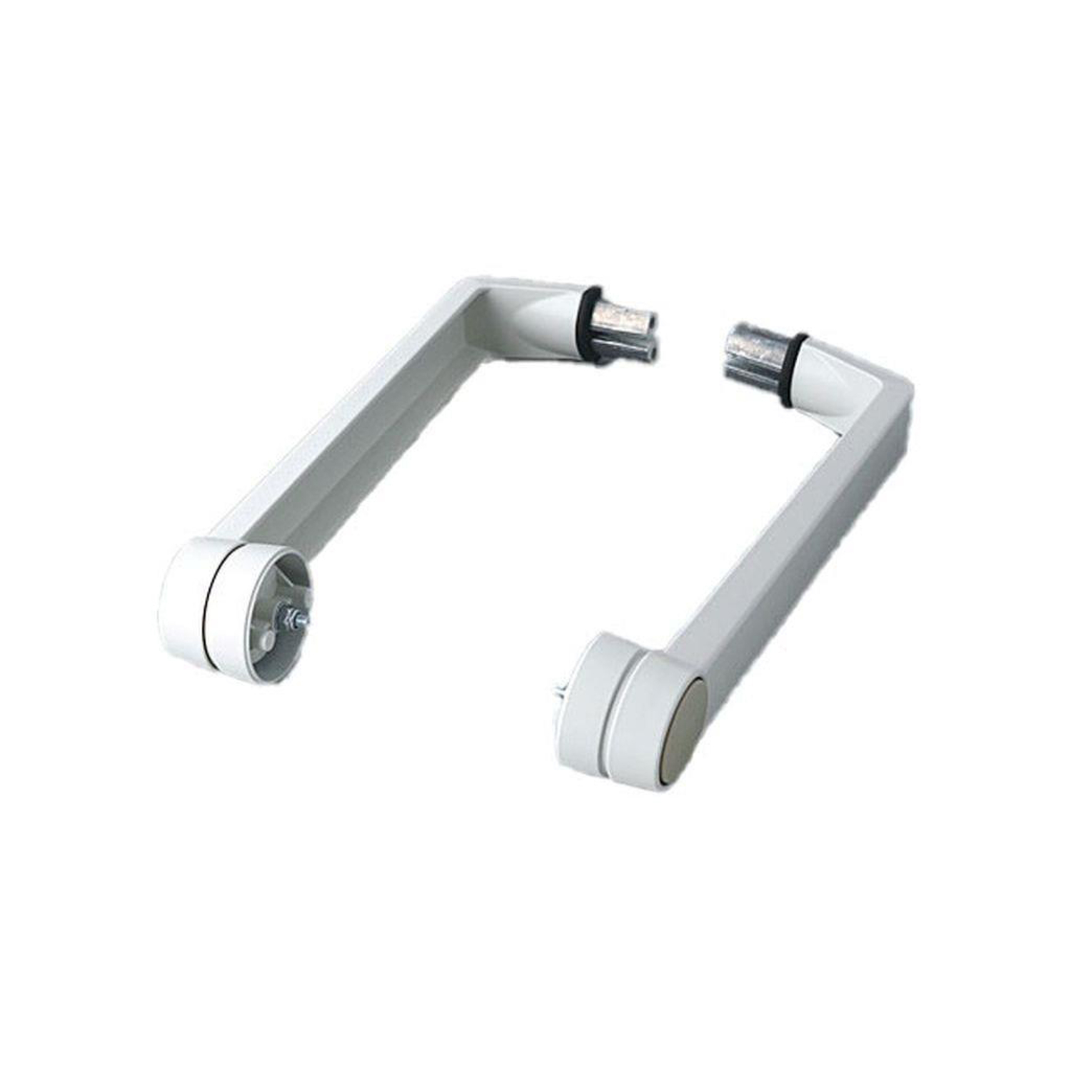 Side arm kit For canting and carrying the unit. Strong ratchet with 30° indexing. Side arms off-white RAL 9002 / push buttons pepple grey RAL 7032. Profile extrusions in the required length are available as separate accessory (on demand). Supply: 2 side arms, 2 fastenings screws.