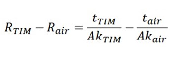 Door de twee thermische weerstanden af te trekken, kan men de volgende relatie verkrijgen voor de verwachte verandering in de thermische weerstand naar de omgeving door het toevoegen van het thermische interface materiaal: