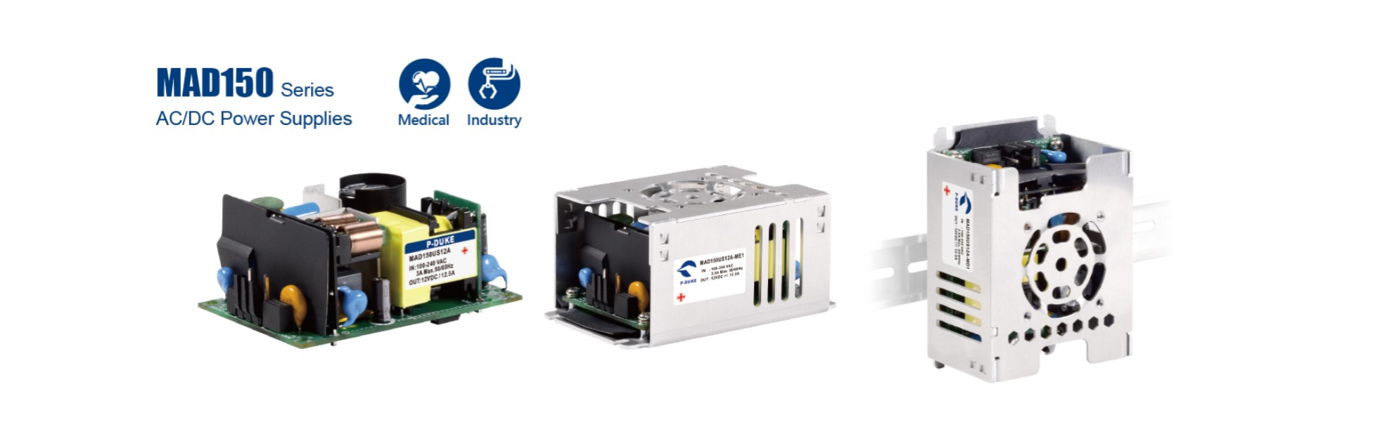 P-DUKE lanceert de MAD150-serie. Een range van nieuwe 3" x 2" verpakking 150 watt versterkte 2xMOPP isolatie AC/DC-voedingen.